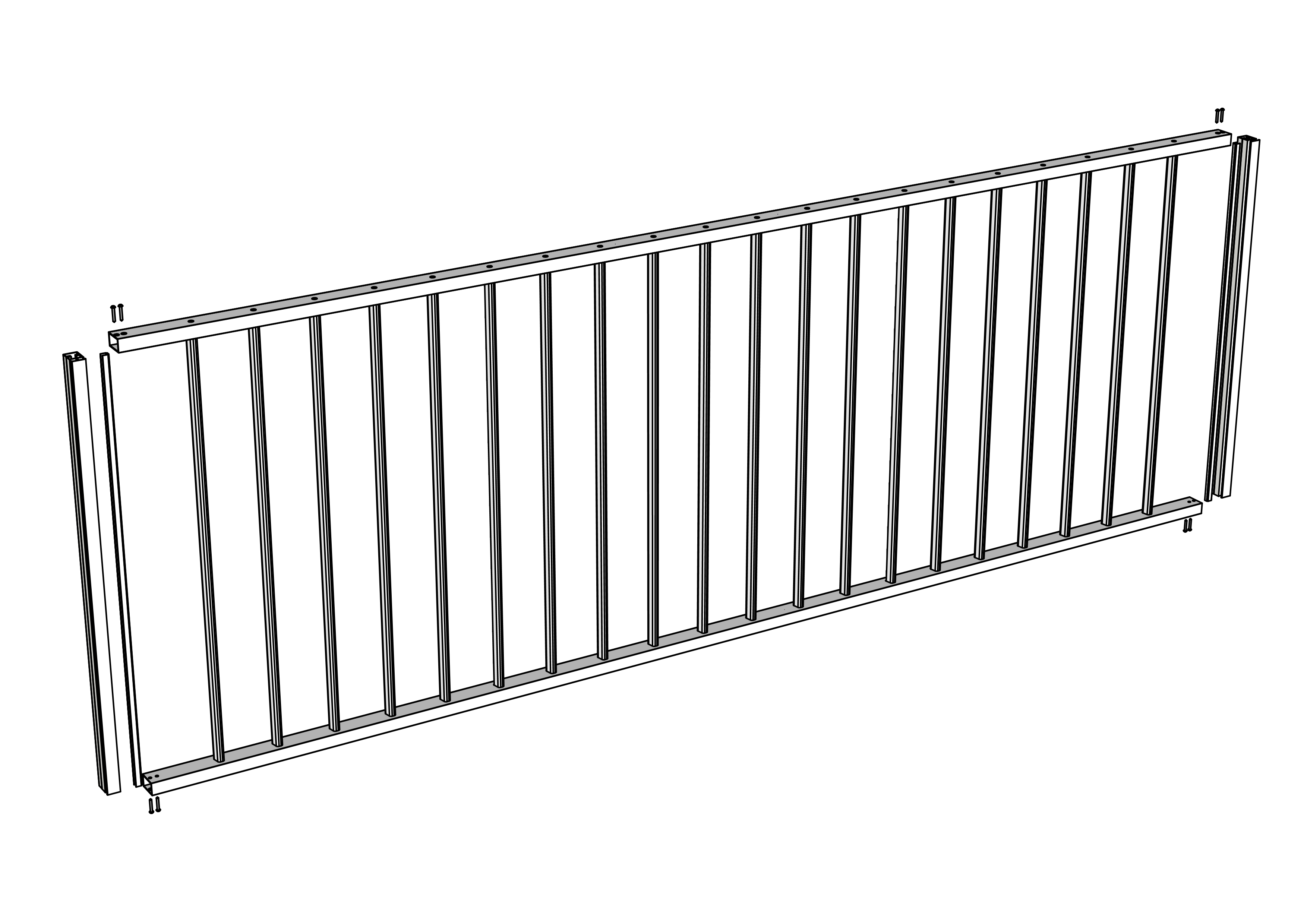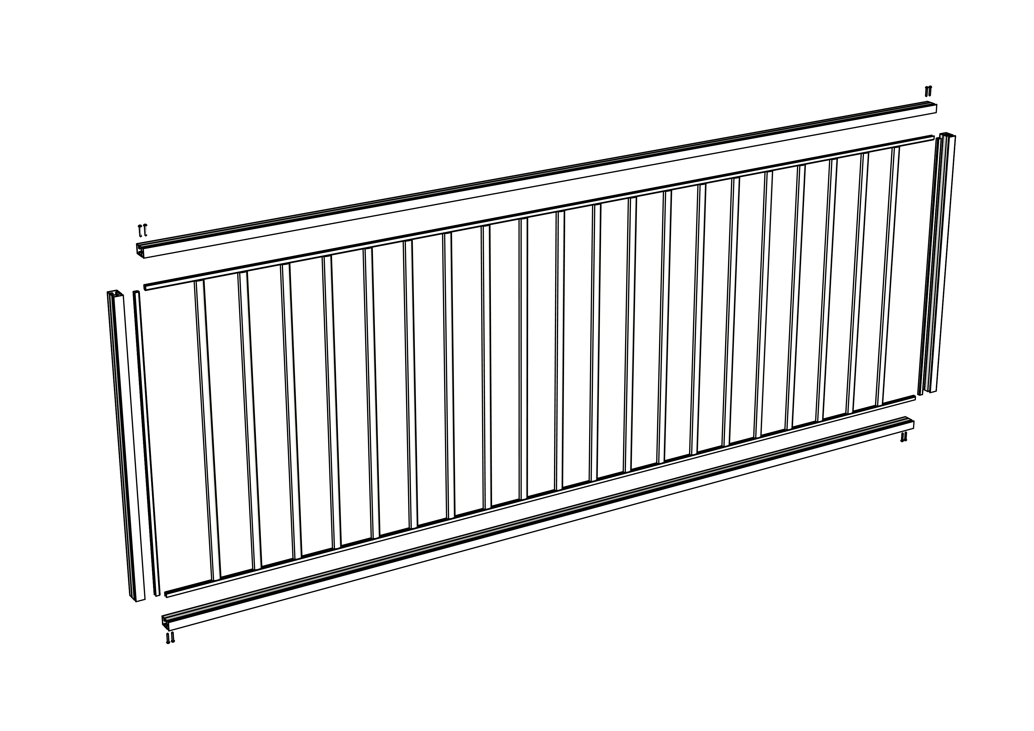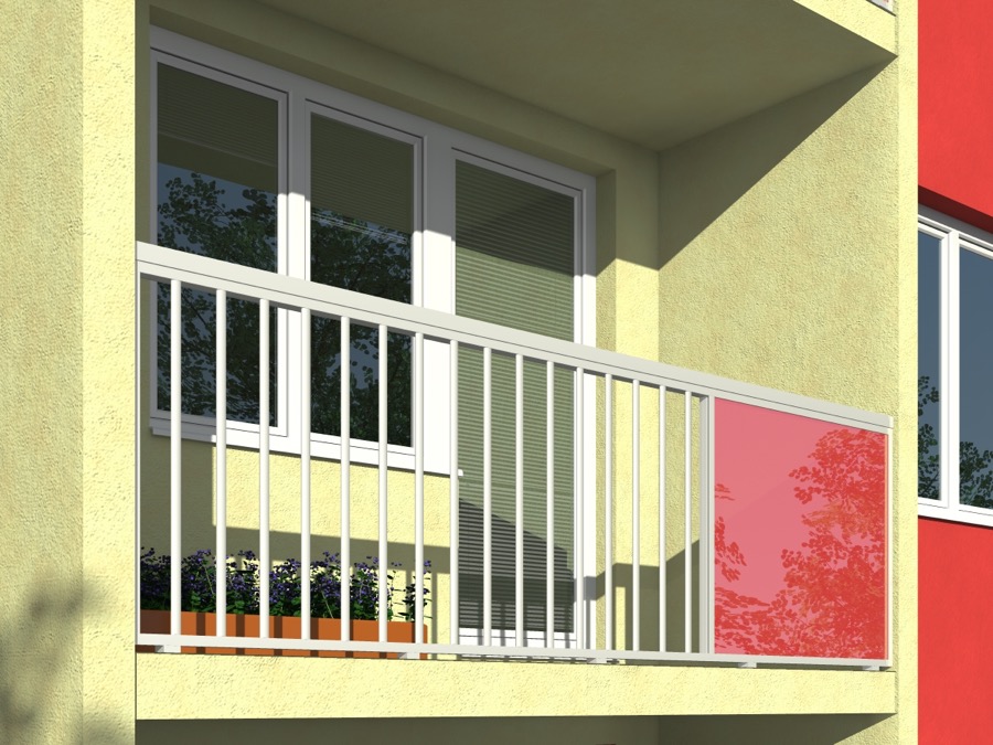 This railing consists of an aluminium frame in which vertical aluminium crossbars are fitted. There is a choice of two types of crossbars, which can be combined with panelling.